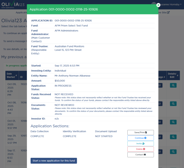 As the Fund Administrators change their internal processes, the options of Olivia123 for those funds will update. It is envisaged that all funds will eventually have paperless applications.